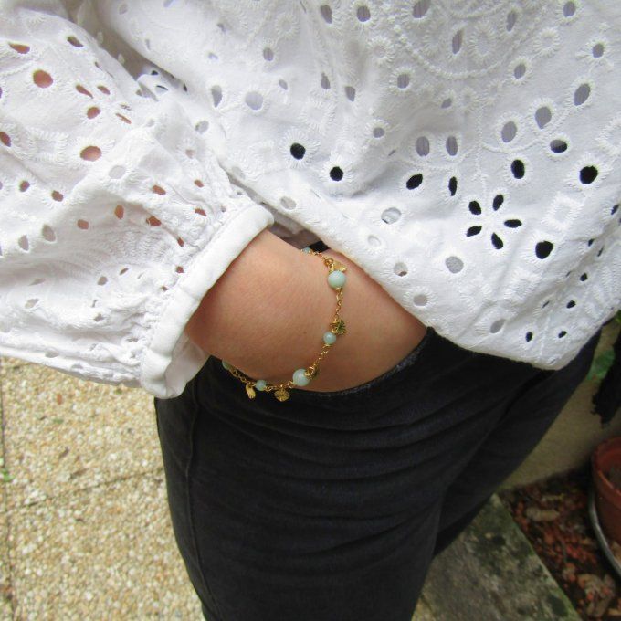 Chaîne acier inoxydable plaqué or 18k et petites gouttes de résine bleue ciel époxy (placage ionique très résistant).