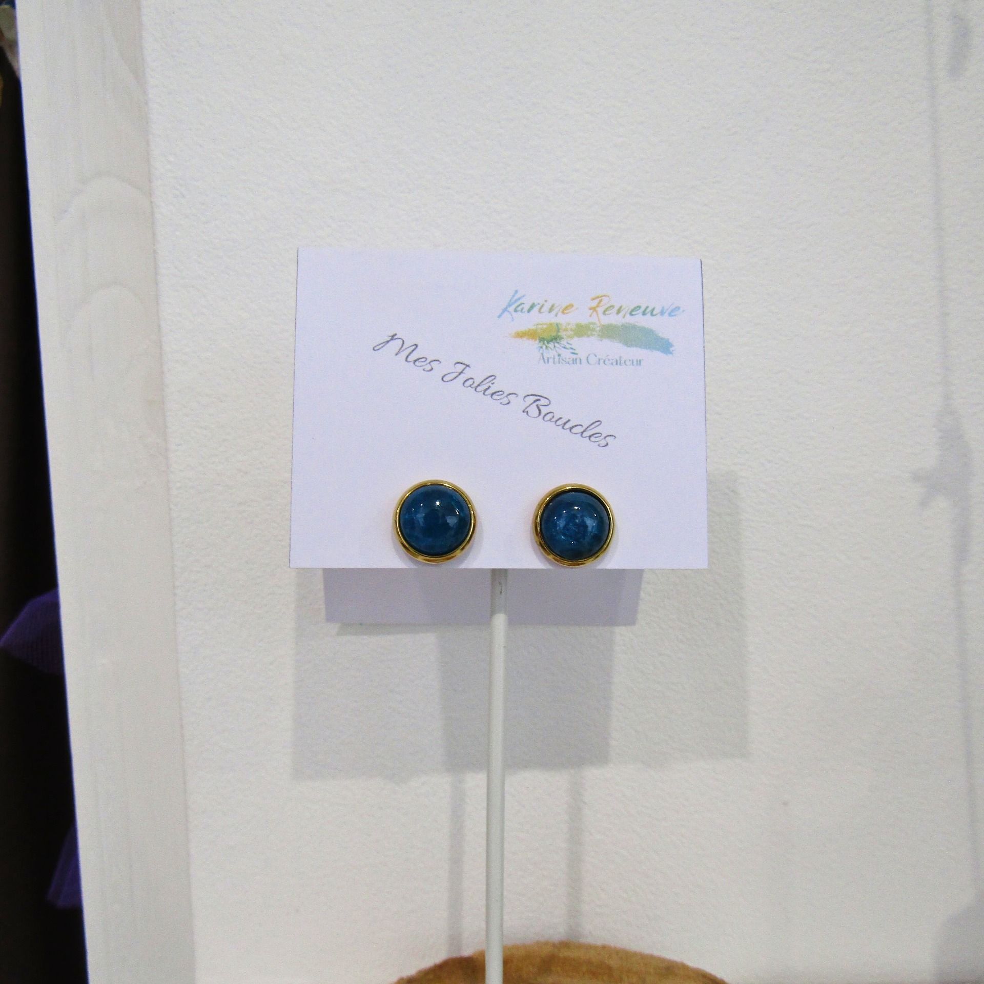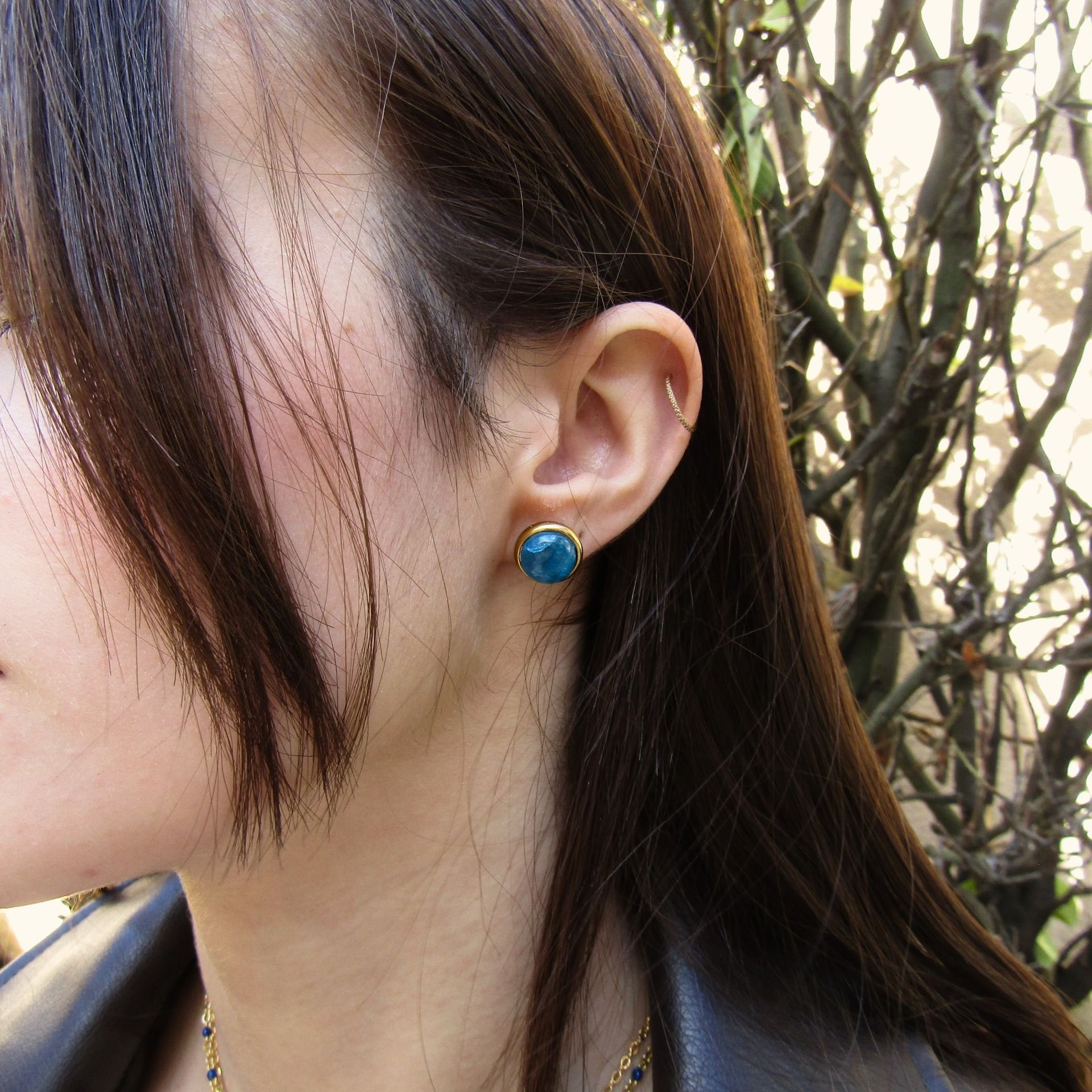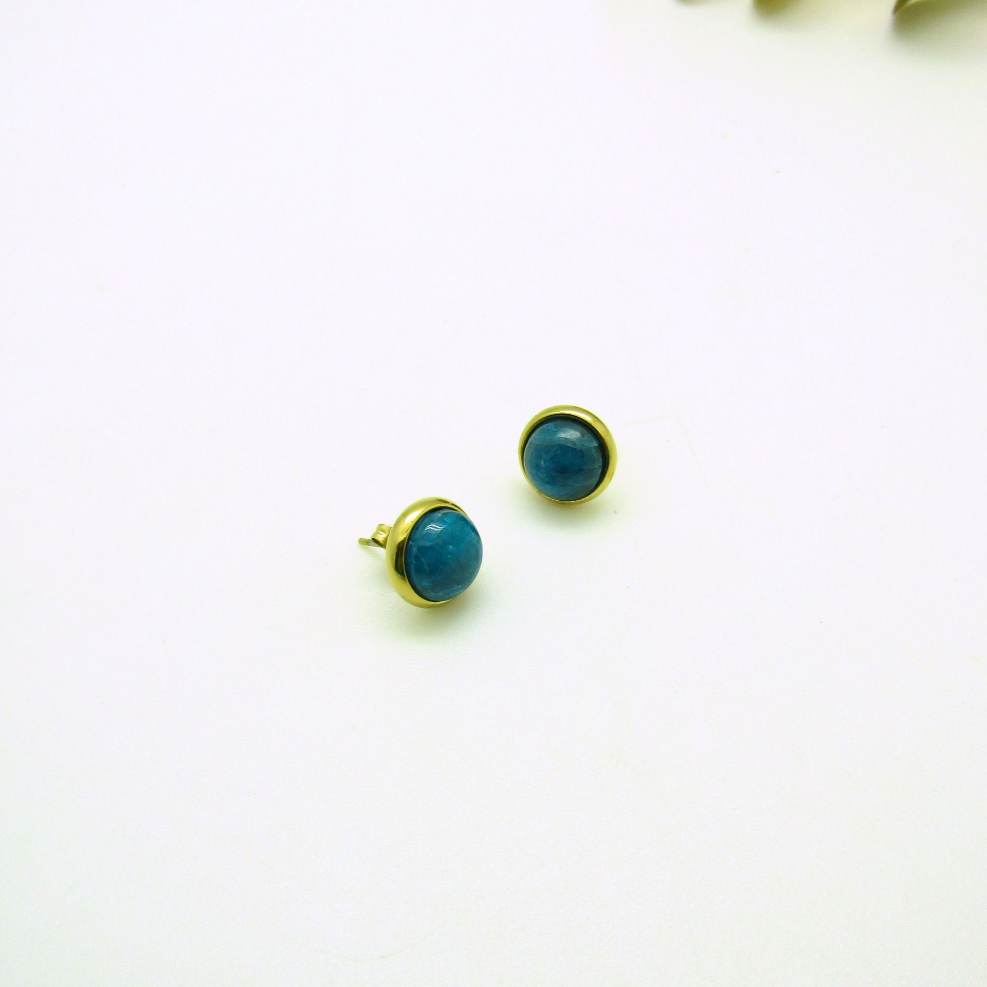 Puces d'oreilles en acier inox doré avec un cabochon en Apatite d'un très joli bleu. Faciles à associer.
