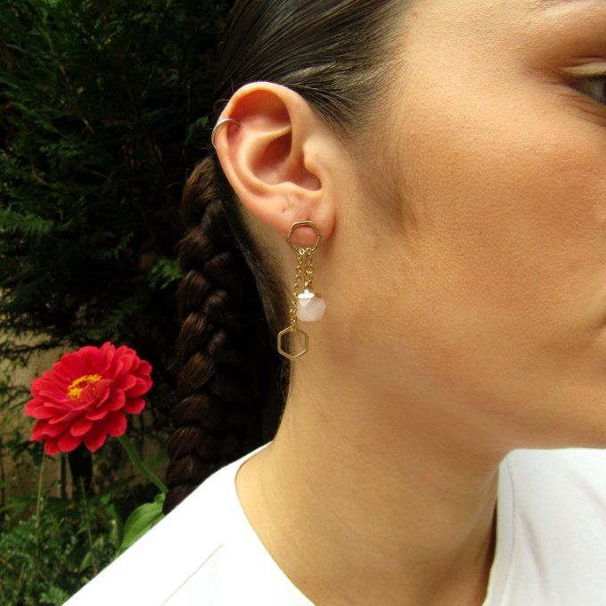 SAUTOIR COULISSANT QUARTZ ROSE